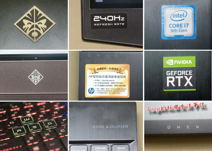 ▓在鍵盤區上有【Intel Core i7 9th Gen】的標籤,這可是用了Intel最新的第九代i7 CPU了,一點都不省成本的啊,根本只為了效能考慮,不惜成本了。