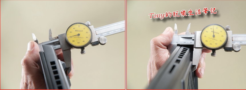 ▲來看看主機本體的厚度,含腳墊最高為28mm左右,不含腳墊則是約24mm上下,不算是特別的厚重,攜帶搬動都還算是不錯的。