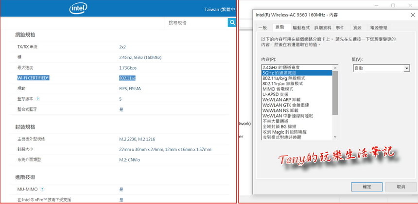 ▲在WIFI部份使用的是Intel AC 9560晶片,具有8.2.11ac及MIMO等模式,並且可以在2.4GHz與5GHz中去運作,這點對於需要有高效傳輸的應用來說,5GH提供了更好更快的傳輸效率(再搭配5GHz的路由器並指定優先頻道時,遊戲串流再也不卡了)