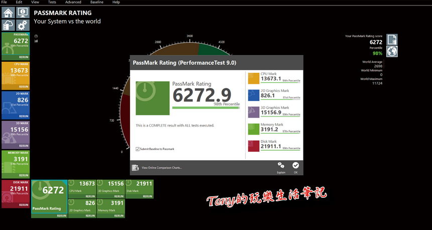 ▲第一個是《PerformanceTest-電腦效能測速軟體》,看起來《HP OMEN 15筆記型電競電腦》主要還是因為DRAM弱掉了被拉低了分數,但是其它的部份都得到了相當高的分數。這就好辦了,應該是因為設置調整還沒有調到最佳化,先透過內部調整應該就可以拉到更高的得分了。