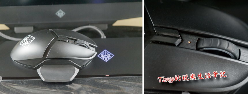 ▲取出《Omen Photon Mouse》來看,左右兩側的蝶翼大小不太一樣,而比較引人注意的是在中間滾輪下方的DPI設定鍵,一般都是單鍵改變DPI設定,但在《Omen Photon Mouse》卻是做成了左右雙鍵,原來《Omen Photon Mouse》是可以透過左右兩鍵來快速且多段精密的改變DPI設定,這真的很方便我們這些經常在做影音圖片編輯的工作者。