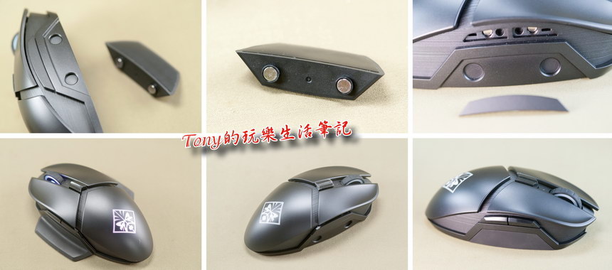 ▲這個部份就我感覺,特別又好用,因為使用了強力磁鐵吸住,兩側的蝶翼與按鍵都可以取下來,然後兩邊對換過來,這樣就由右手使用變成了左手使用,這對左撇子的朋友應該會覺得超好用的吧﹖