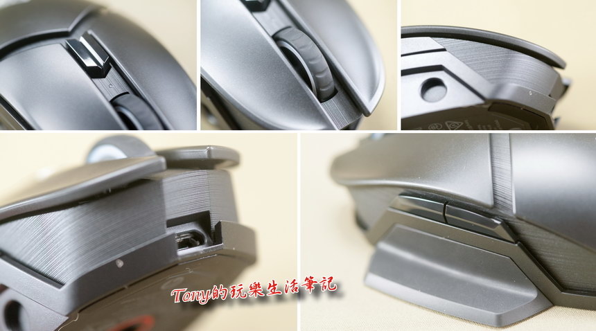 ▲各部位的細節都做的很細緻,還加上了許多的髮絲紋設計,外觀質感還真的是不低啊!另外在滑鼠前端,有一個Micro-USB的插頭,可以另外充電(就怕真的有人會忘了充電而臨時沒得用)或是當有線滑鼠使用。