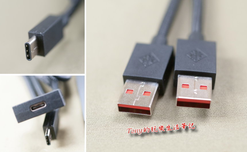 ▲主板本身要接上電腦,原本的接頭是Type-C的接頭,但也另外有附上一條Tpye-C轉雙USB的轉接線,可能是因為若要無線充電時,耗電比較大,所以需要同時佔用到雙USB接頭。