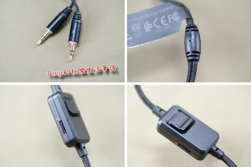 ▲《HP OMEN Headset 800》使用的是雙插頭設計,一個是麥克風,一個是耳機。這個我就覺得應該要修改一下,改用USB單一接頭就會更方便使用的,不然以筆電來說,大多是只有耳機輸出,麥克風就無用武之地了。另外中間有個開關,那個開關我試了幾次,還是感覺不到是有啥作用,最後才查出來,原來是麥克風的開關啦!難怪我一直都試不出改變。而音量的大小就用旋鈕控制。說起來算是很簡單的設計,應該是比較偏向給桌機型的電腦使用的。