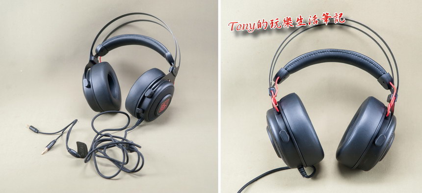 ▲取出後發現《HP OMEN Headset 800》的設計就滿簡單且中規中矩的,唯一特別的就是覆耳包覆及頭帶的皮質是很軟很舒服的,完全不輸給我現在用的數千元的賽德斯電競耳機。