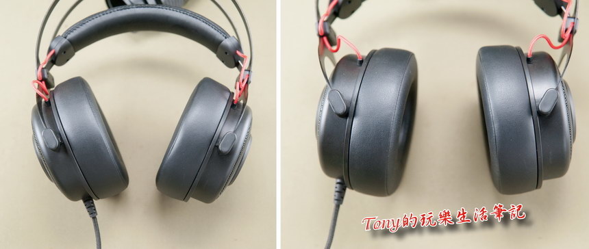 ▲耳罩的皮革真的是很棒,外面包覆格網,整體質感是不錯,就是整體的設計很低調,一點都沒有電競耳機的戰鬥氣息啊!
