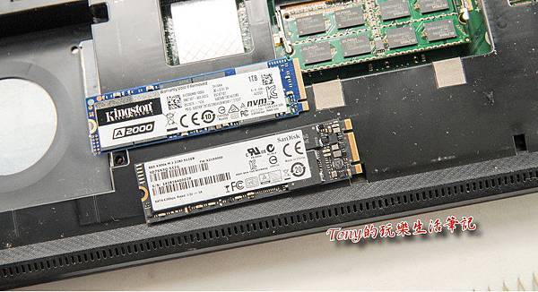 ▲從這圖片就可以看出來接腳的不同。《Kingston A2000 SSD 固態硬碟》是M key的設計,是新的M.2 NVMe PCIe規格。而Sandisk 512G則是為SATA3的規格,接腳為B+M key的設計。兩者很不同,速度更是差了四倍速。